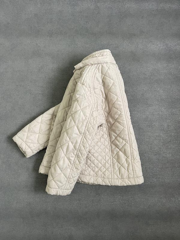 Акуратна демісезонна куртка, легка й тепла. Стан гарний, без дефектів, фурнітура справна. 🔹 Опис: Колір: молочний / айворі Стьобана, легкий утеплювач Комір-стійка Застібка на блискавку + кнопки Кишені на блискавках Підійде на весну / осінь 📏 Розмір: 2–3 роки 📐 Заміри: Плечі — 28 см Між пахвами — 32 см Довжина — 37 см Рукав — 33 см 📦 Швидка відправка 📩 Відповім на всі запитання