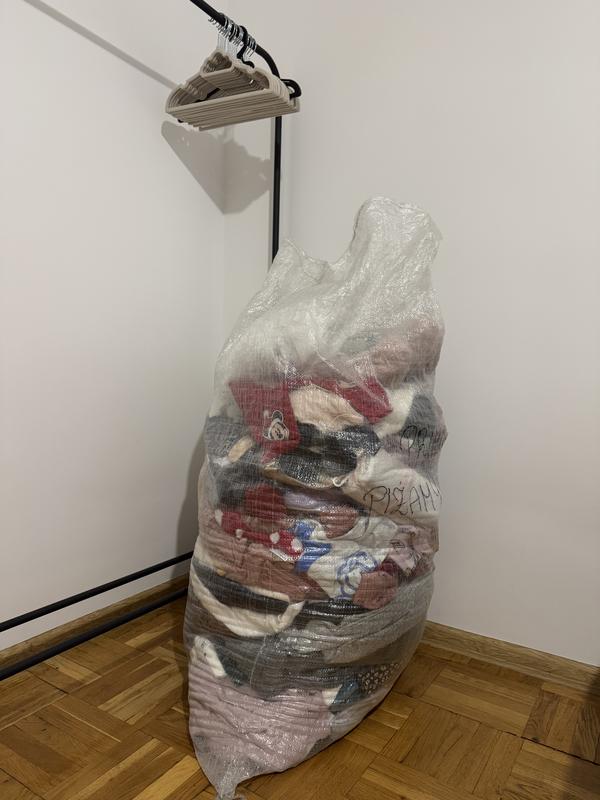 Мешок с миксом детской стоковой одежды (0-12 лет) Вес около 21 кг Подойдет тем, кто продает в утик ток трансляциях Или же для тех, кто желает попробовать этот бизнес Отдаю по очень приятной цене так как меньше этим заниматься В мешочку микс George и Kiabi Вешалки в подарок