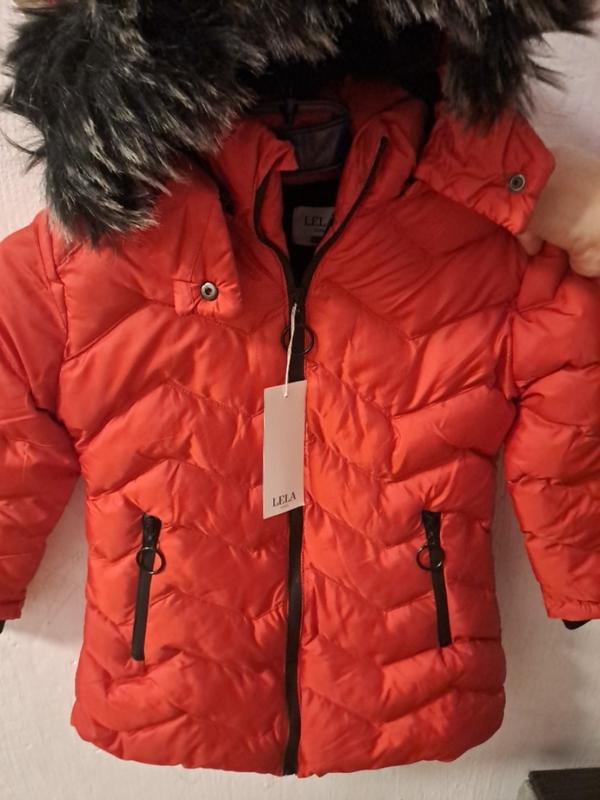 Куртка красная детская с теплой подкладкой, капюшон съемный, на рост 116 карманы на замочке, на резинке на рукаве, состояние новое полуоб 38 длина 55 рукав 39