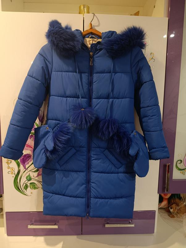 Модный пуховик в глубоком синем цвете. Создан для защиты от холода и ветра. Идеальный выбор на зиму. Состояние очень хорошее, никаких дефектов или повреждений. По этикетке на рост 140, но можно и на 146 носить. По подробным замерам воспользуйтесь