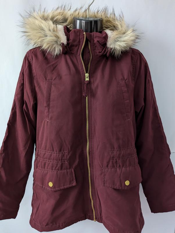 Парка для девочки h&m,150,11,12,куртка, вишня,бордо,полиэстер,хлопок,теплая,капишон,с...