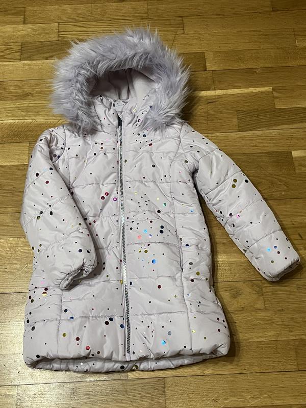 Яскрава та тепла куртка для дівчинки на зріст 116-128 см, але краще орієнтуватись по замірах. Нюансів немає більше фото за запитом. Підкладка фліс вона ніжно фіолетового кольору.