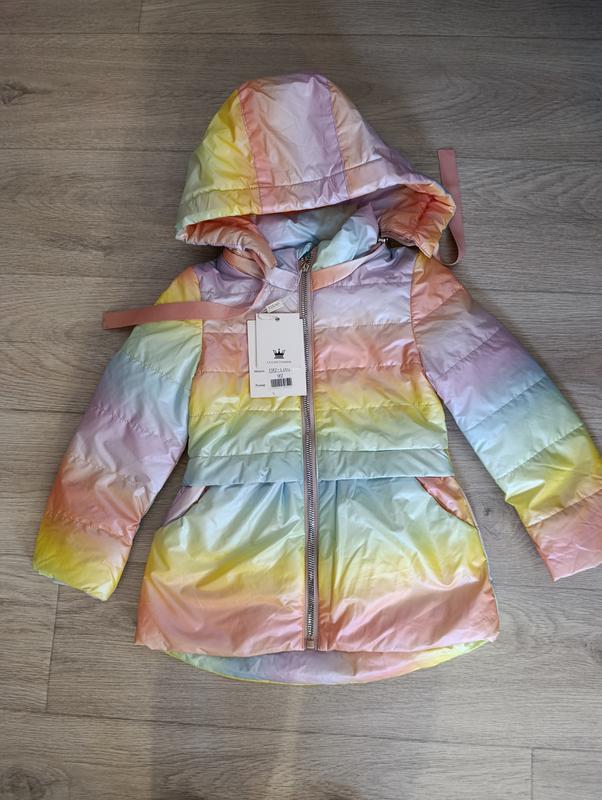 Стильная демисезонная куртка для девочек нового сезона ( теплая весна - осень), изготовлена из качественной водонепроницаемой плащёвки, середина изделия- трикотажная подкладка, под ней-еслегкий холлофайбер( наполнитель 50), капюшон- снимается,низ рукава - трикотажный манжет.Размеры:92-116.Размеры достаточно полномерные, темной смотрите Мои замеры: 92 размер: -длина рукава от плечевого шва:38.5 см; -ширина по плечевым швам:27 см; -длина от шеи по спинке:51 см. 116 размер: -длина рукава от плечевого шва:44.5 см; -ширина по плечевым швам:30 см - длина от шеи по спинке:59 см Замеры сделаны лично со мной вручную, допустимая погрешность+-1 мм.