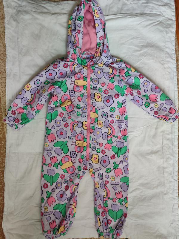 Комбинезон в отличном состоянии. Очень легкий и мега удобный. Материал болочка, внутри флис. На самом деле очень красивый. Длина по спинке 78 см Длина до памперса 42 см Рукав 35 см По линии груди 36 см.