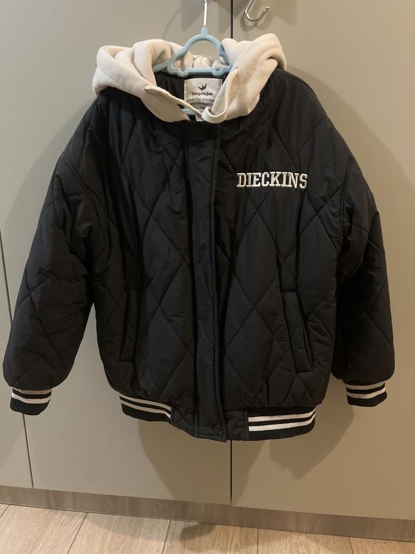 Куртка для хлопчика Тепла і надійна Колір чорний, капюшон молочний, манжети і низ з білими полосками Рукав трохи приспущені На молніі і кнопках Є кишені Довжина 57 см, ширина 45см, ширина низу 37см