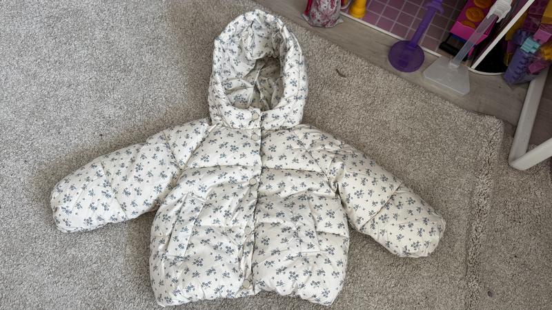 Стильна курточка Zara , яскравий принт , пухка