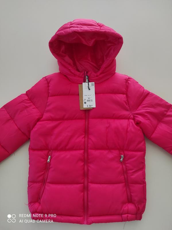 Куртка для девочки от известного итальянского бренда OVS. Цвет очень красивый, насыщенный малиновый. Длина по спинке - 53 см Полуобхват груди - 42 см Рукав от плеча - 48 см