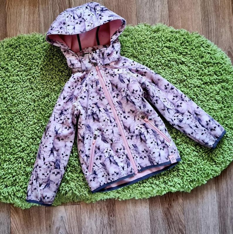 Очень классная качественная плотная ветровка Софтшелл от HM полностью на флисе внутри. Продуманная до мелочей. Капюшон отстегивается, карманы на молниях. Закрывает шею очень хорошо. Очень удобная курточка, рекомендую! Размер 3-4 года на рост 110 см Замеры: Длина от плеча до низа 42/45 Ширина под ручками 35 рукав от капюшона 43