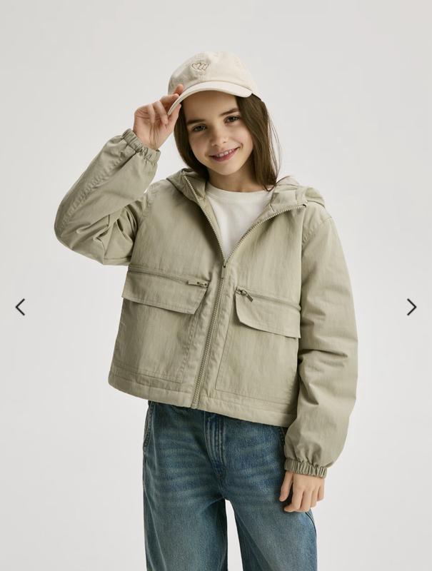 Новенька коротенька легенька весняна куртка, оливкового кольору. Нова але без бірки, чоловік купив для хлопчика але вона дівчача. Пише 134/140 але буде набагато раніше