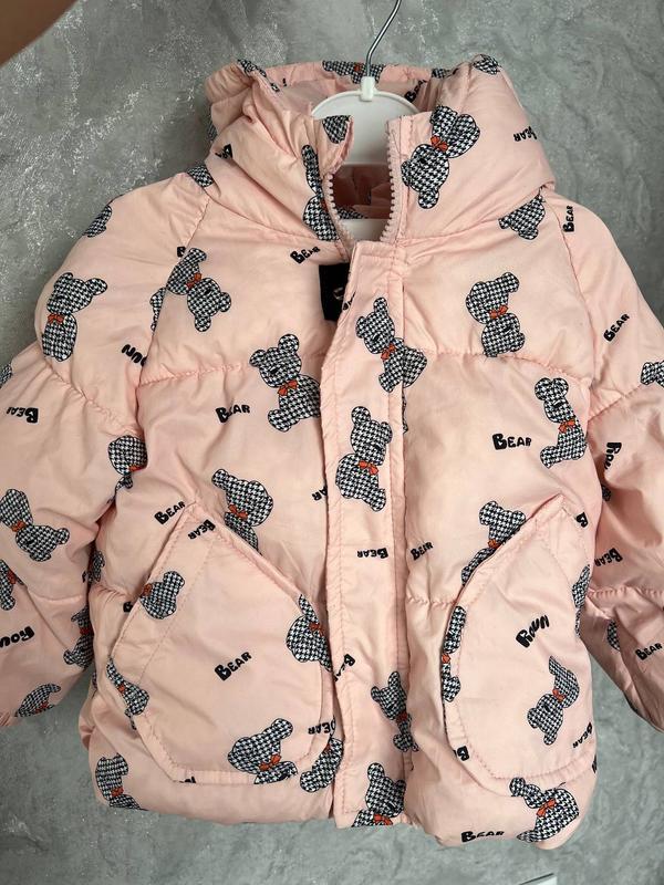 Очень милая детская курточка с принтом мишек Нежный персиковый цвет, теплая и комфортная. 📏 Состояние: очень хороший 🧥 Теплая, объемная, с капюшоном ✨ Удобные большие карманы 🐻 Хороший модный принт Идеальна на холодную весну,осень или теплую зиму.Размер 100