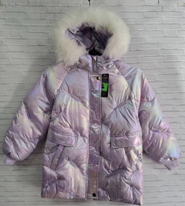 Еврозима, цвет сиреневый, очень красиво смотрится. Длина рукава от горловины-54см, полуобхват груди-42см, длина -61см (возможен погрешность +-1см) Примерно на рост от 128-146см( смотрите по замерам)