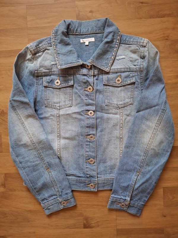 джинсова куртка для дівчинки на 11-12 років у чудовому стані, довжина 47, ширина 40, рукав від плеча 55