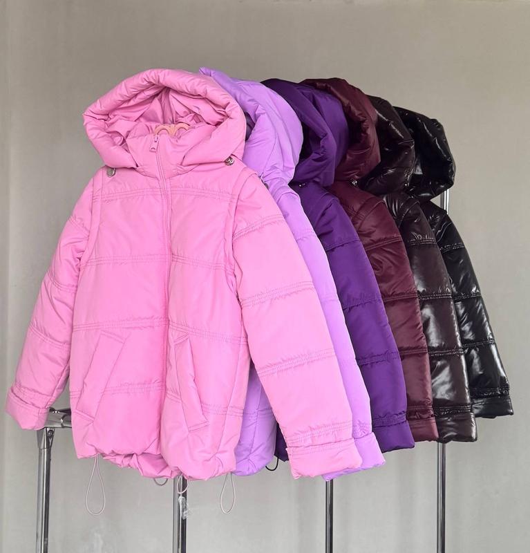 ✨ Дитяча куртка-жилет для дівчаток✨ (пряма строчка) Одна річ - два образи 😍 Відстібай рукави і отримуй легкий жилет або залишай рукави для теплої куртки 💫 Тепло, стильно та універсально для мінливої весняної погоди 🤍 🍭 Кольори: чорний, шоколад, бургунді, фіолет, зефірний рожевий, ліловий 📍Розміри: 34-44 ✔️Матеріал верху залежить від кольору - мʼяка глянцева плащівка та матова плащівка Емі ✔️Утеплювач - силікон 150 ✔️Підклад - ніжний нейлон ✔️Капюшон відстіжний на молніі, із регульованою куліскою ✔️Рукави відстіжні на молніі ✔️Глибокі кишені для дрібниць ✔️ Затяжки по низу виробу - нічого не задуває 🌬️ Силует, який можна налаштувати 💫 ✔️Матеріал високоякісний, водовідштовхувальний, дихаючий 👌🏻 34 — ОГ 38 | довж. 50 | рукав 47 | плечі 30,5 | зріст 122 36 — ОГ 39 | довж. 52 | рукав 50 | плечі 31 | зріст 128 38 — ОГ 40 | довж. 54 | рукав 53,5 | плечі 32 | зріст 134 40 — ОГ 42 | довж. 56,5 | рукав 57 | плечі 34 | зріст 140 42 — ОГ 44 | довж. 59 | рукав 60 | плечі 35,5 | зріст 146 44 — ОГ 46 | довж. 61 | рукав 63 | плечі 36 | зріст 152