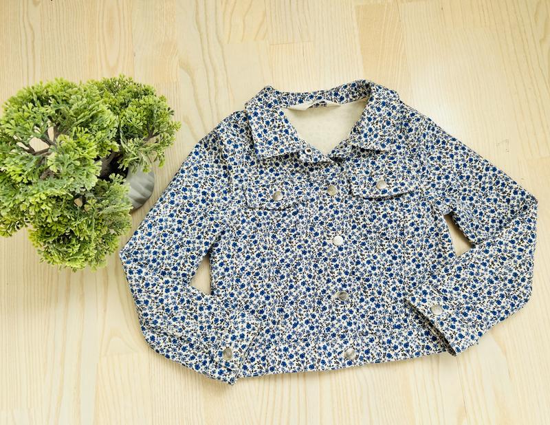 Стильна джинсова курточка для дівчинки. Розмір 5-6 р. Стан нової. Одягали 2 р. Гариний квітковий принт.