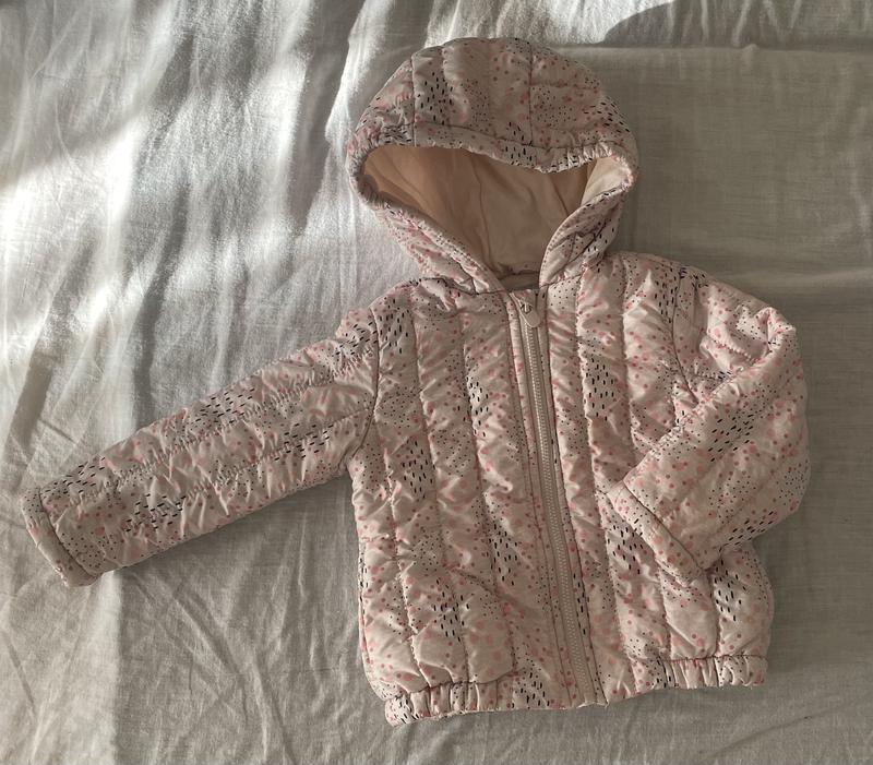 Куртка на дівчинку в ідеальному стані на весну. Розмір пише 74, але більшомірить. Можна носить до 80-86см. Заміри надам. Підкладка котонова