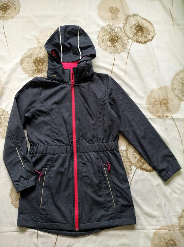 Брендовая,термо куртка,софтшелл для девочки 13-14 р в отличном состоянии. Длина-55 см,ширина под ручками-49 см, по низу-54 см,рукав от плеча-56 см,горловины-65 см