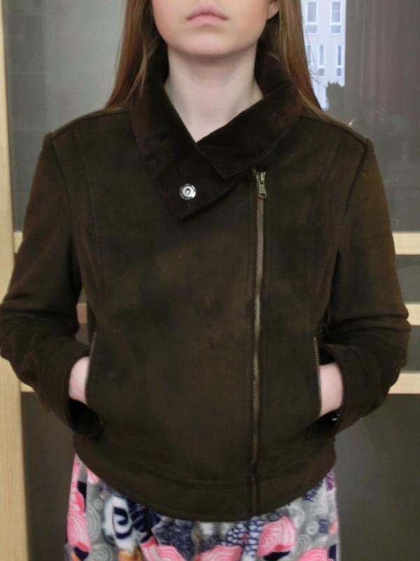 Демисезон. Верх искусственная замша, внутри искусственный короткий мех. Очень приятно тактильно. Пр-во Румыния. Длина 50 см, рукав 61 см, плечи 39 см, талия 37 см. Размер 40.