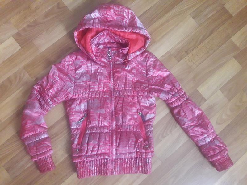 курточка весна-осень на девочку р.134, капешон на молнии,все замеры на фото.есть нюанс маленькая дырочка зашывалась на левом рукаве в носке не видно (к фото последнему прикрепила)