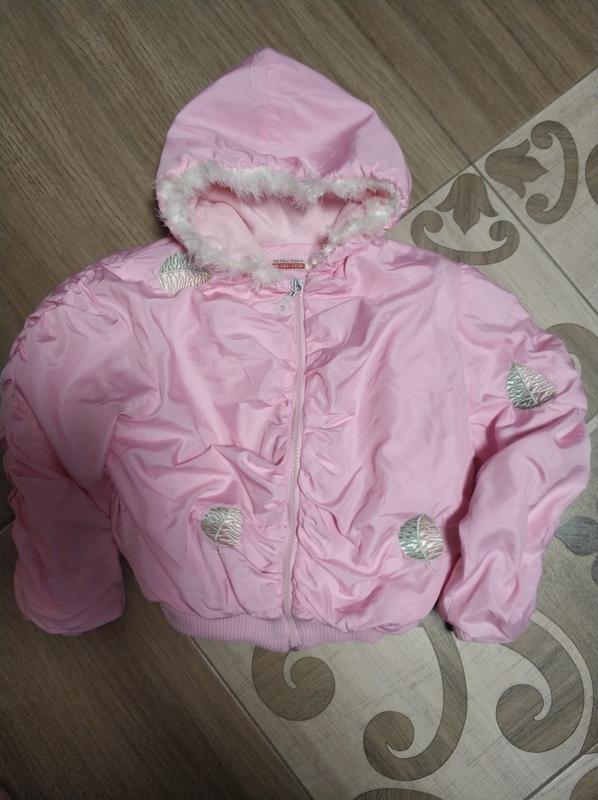Красивая и нежная курточка где-то на 4-5 лет, на рост 110. Замеры: длина 40, ширина 40, длина рукава от плеча 38-39.
