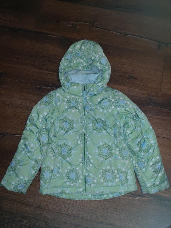 До 0 градусов, тёплая курточка, тонкая но на гусином пуху. Фирма L. L. Bean. Замеры от плеча до низа 45 см, длина рукава от подмышки до края 38 см