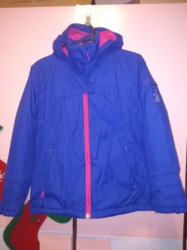 Яркая расцветка, Лёгкая, невесомая, но в тоже время тёплая куртка.( подойдёт и как деми и как зимняя для активных прогулок, и для катания на лыжах тожеподойдёт) длина спереди 54 см, сзади чуть длиннее 58см. Длина рукава от плеча 48см, длина рукава от подмышки 37см. Воротник стойка- шея будет закрыта. Не продуваемая, не промокает. Очень классная, наша любимая)