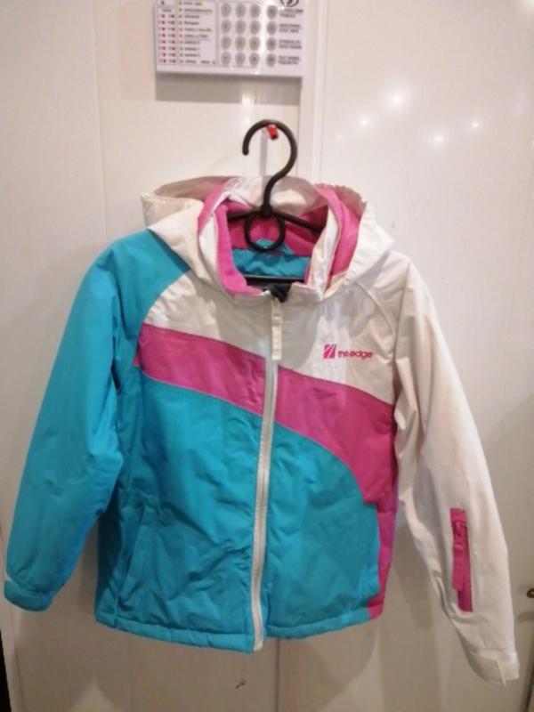 Непромокаемая, на синтапоне, длина 50см, объем 84см, длина рукава от шеи 50см, на рост 110-116см