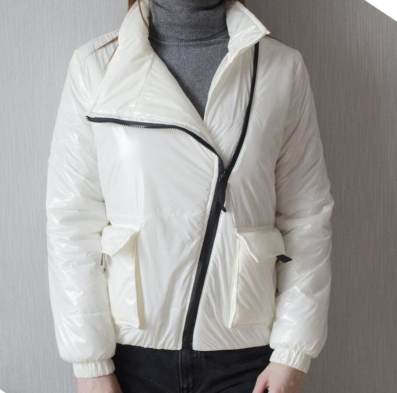 Оригинальная белая лёгкая куртка с горловиной, на молнии и резинке