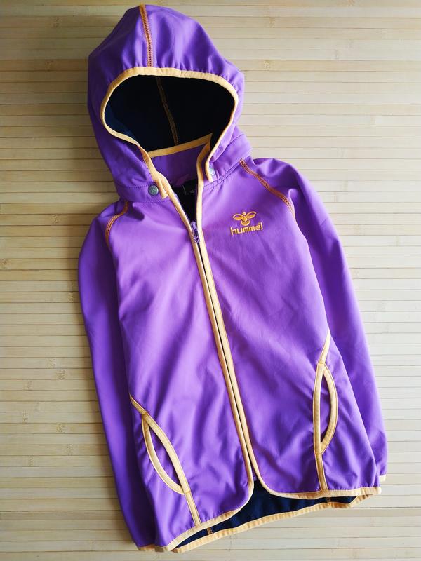 Крутая ветровка для девочек Hummel Софтшелл на флисе Капюшон с резоночкой, отстёгивается (на кнопках) по бокам кармашки Внизу на спинке светоотражатель р. 128