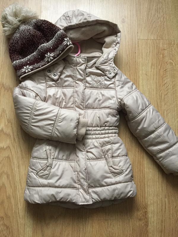 Куртка в отличном состоянии без нюансов. Рост указан 116 но большемерит до 128. Тёплая, одевали и зимой. В идеале на худышку. Отвечу на все вопросы, шапка в подарок