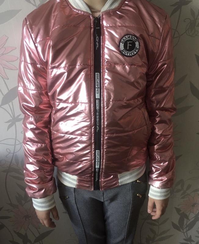 Класна блискуча курточка для модниці! Можна носити із туфельками і кросами} В хорошому стані. Заміри: ПОГ — 47 Довжина — 54 Рукав — 60 {манжет} Розмір 150, носили і на 140-146} При покупці з кросами із моїх оголошень, гарна знижка!