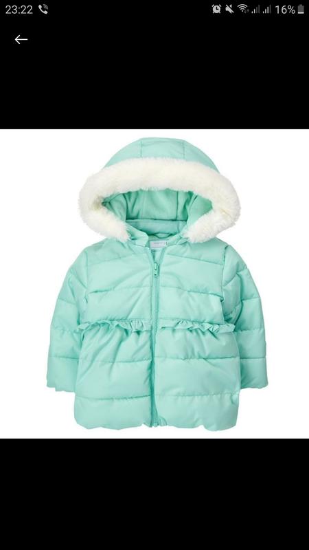 Очень красивая куртка мятного цвета, не смогла на фото передать реальный ее цвет. Ребенок в ней, как куколка. Утеплена флисом всередине и на капюшоне, в рукавах нет.