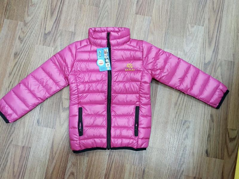 Легкая демисезонная куртка для девочки 4-5 лет. Размер xl длина куртки 46см, длина рукава 40см, высота воротника 6см, ширина куртки 33см.