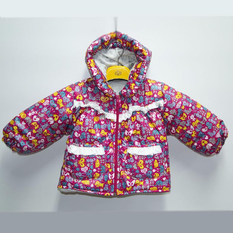 Демисезонная курточка на девочку. Размер 74. Подкладка трикотаж, в капюшене резиночка, утеплитель синтепон.