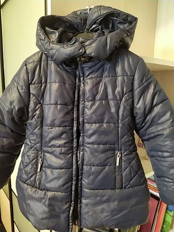 Курточка для девочки темно синего цвета (фото немного искажает цвет), носили и осенью, и зимой при небольших морозах, на синтепоне и флисе. Капюшон отстегивается, все замки работают, собачки фирменньіе, из дефектов - есть две маленькие точки затяжки (на двух последних фото).