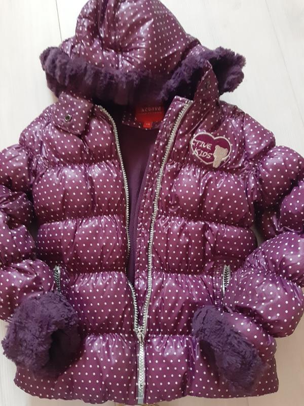 тепла,на флісі.Трохи збитий мех на рукавахКапішон знімається.Довжина 45,рукав 46 з манжетом