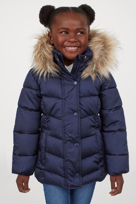 Утепленная стеганая куртка из блестящей ткани. Съемный капюшон с отделкой из искусственного меха. Воротник-стойка, застежка-молния и клапан на кнопках. Боковые карманы, манжеты на резинке. Курточка этого сезона указан размер 98, может чуть большемерить ширина под рукавами 36 длина рукава 35 длина спереди 47 по спинке 52