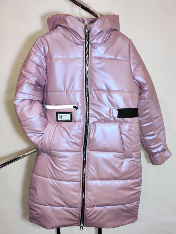 NEW!!! Зима, жемчужная плащевка , водонепроницаемая, 💜новинка этой зимы, молния и шеврон светоотражайка, 💜наполнитель синтепух, очень лёгкий и в тоже время очень теплое пальто, 💜подклада флис, шикарный большой капюшон, хорошая защита от ветра и мороза размер/💜длина/пог/рукав 152/💜87/47/64-4шт