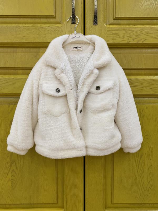Тёплая курточка, очень мягкая и приятная. Длина рукава 32 см, длина по спинке 40, по плечам 39
