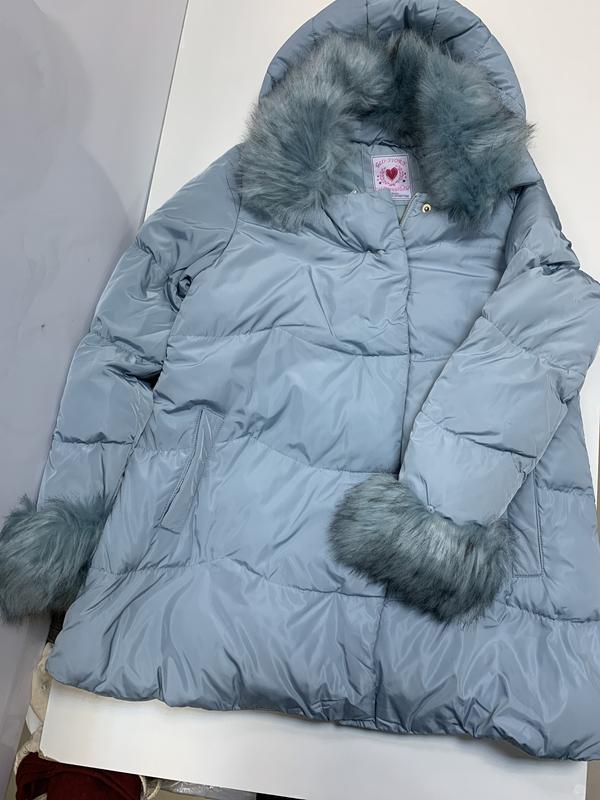 Подростковые полу пальто ментолового цвета На воротнике и возле на рукавах элементы искусственного меха не затягивается на резинку