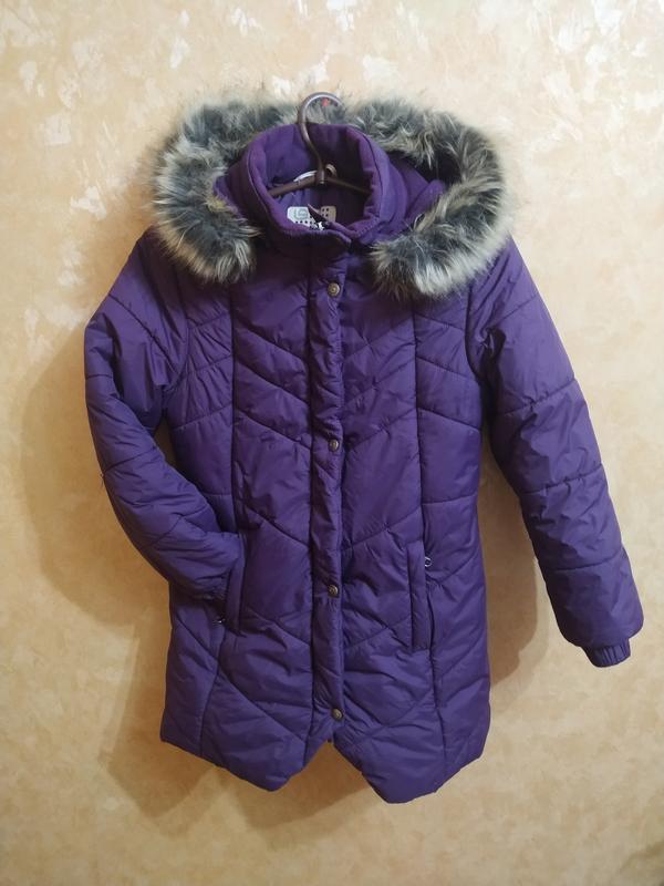 Зимняя удлиненная куртка из водоотталкивающей ткани. Впереди есть два глубоких кармана на змейках. Рукава с манжетами-резинками. Мех и капюшон съёмные. Замеры: Ширина плеч - 36 см ПОГ - 44 см ПОТ - 42 см ПОБ - 48 см Длинна рукава - 54 см Длинна по спинке - 73 см