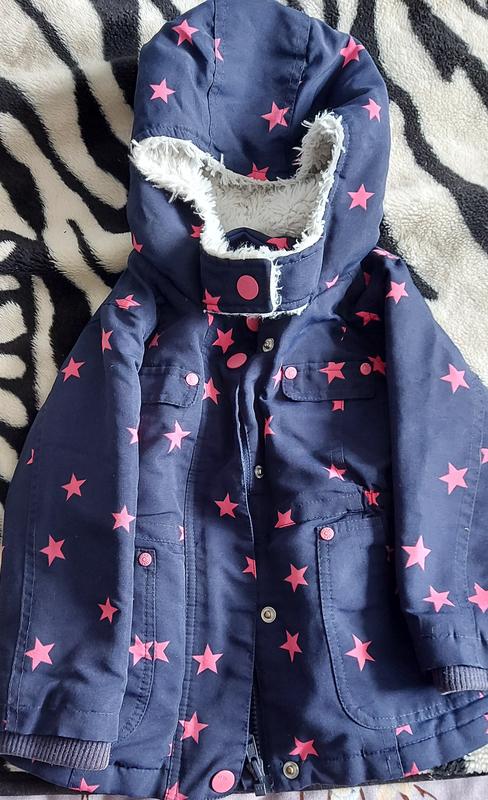 Курточка в отличном состоянии изьянов нет . относили 2.5 года . стирается отлично . капюшон травка, а внутри флиска.