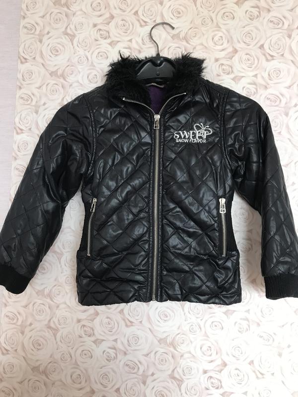 Перехідна курточка для дівчинки, на ріст 116см, стогна, металічний замок, всередині флісова підкладка, комірець із штучного хутра.