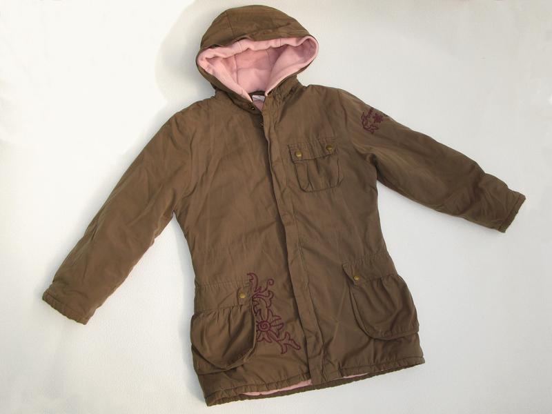 Парка для девочки. Утеплённая, для холодной осени/весны, тёплой зимы. Красивая вышивка, модный цвет, флисовая тёпленькая подкладка. В рукавчиках резиночка. Замеры: Длина- 68 см рукав от плеча- 51 см плечики- 38 см ширина под мышками- 46 см талия- 42 см ширина по низу- 49 см