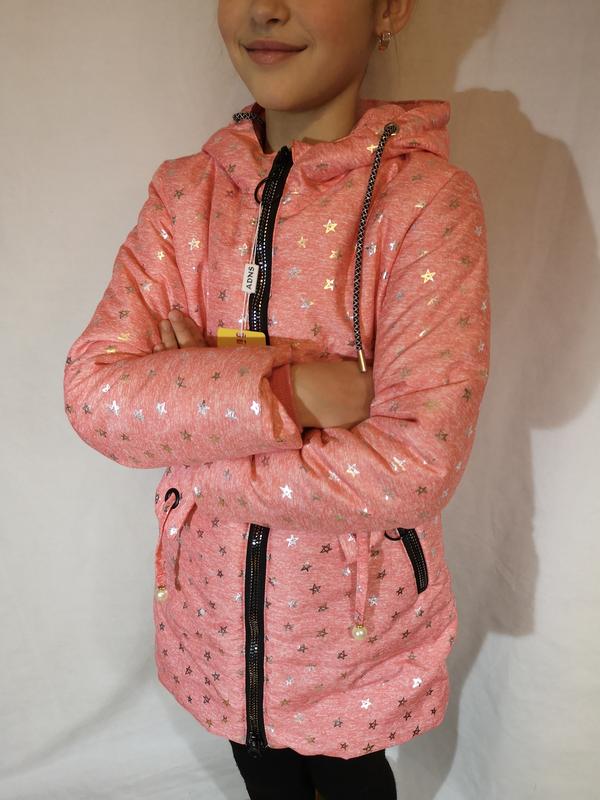 Стильна куртка на дівчинку c блискучими зірками! Демісезонна модель! Утеплювач - 100 гр холлофабера. Холлофайбер легко переться в машинці і не збивається на відміну від синтапона. Температурний режим - від +5 до +15 градусів. На рукавах - в'язані манжети. Розміри у наявності - 122 Модель добре підійде на худеньку статуру. Ширина плечей - 29 Довжина рукава від плеча - 44 Довжина куртки - 59 ПОГ - 34