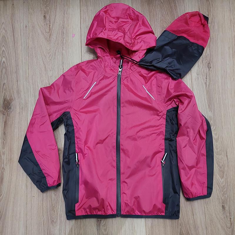 Детская курточка-ветровка с сетчатой подкладкой. Прямого кроя и средней длины, спереди и сзади есть светоотражающие элементы. Капюшон вшитый, в верхней части небольшой козырек. Застёгивается на непромокаемую молнию. Спереди два прорезных кармана. В комплекте есть мешочек для упаковки и хранения. Поверхность водоотталкивающая, все швы герметично проклеены. На спинке есть клапан для воздухообмена. Есть защита от защипывания подбородка. Рукава на резиночке. Унисекс. Куртка-дощовик 122-128 довж 51см, пог 42 см, рукав від плеча 47см, від вороту 56,5 см ( в середині сіточка) є кармани + сумочка