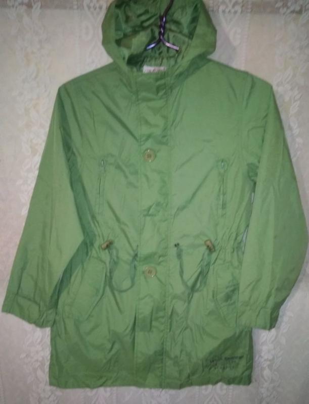 Курточка ветровка в стиле парка на девочку рост 140-150 см. Красивого фисташкового цвета, имеет два кармана нагрудных на молнии и два кармана набедренных на кнопках. Отличная курточка в идеальном состоянии.