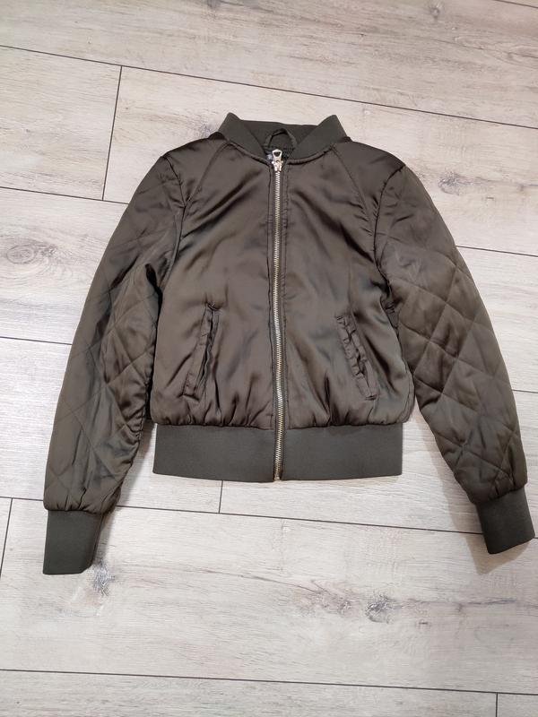 очень стильный бомбер, состояние отличное, есть нюанс на фото видно, немного затяжек, но в носке не заметно. Плечи 33, ширина 38, рукав 51.