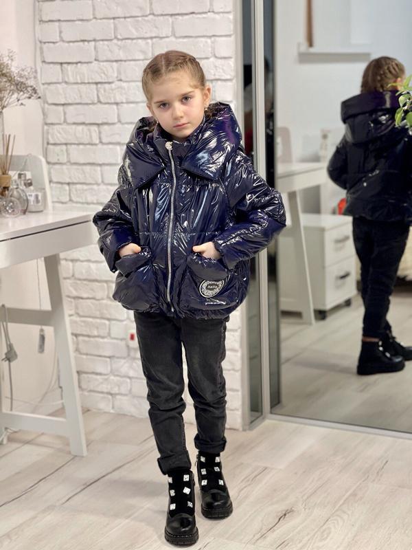 Укороченная курточка для девочки Есть два накладных кармана. Застегивается на молнию. Есть каппюшон с отворотом. Внизу на резинке. Наполнитель- синтепон 100. Цвет - темно-синий. Материал верха - плащевка лак. Качество отличное! Производитель - Украина. Замеры: (длина рукава - от шеи) 122 - длина - 38см, полуобхват груди - 42см, рукав - 50см. 128 - длина - 44см, полуобхват груди - 43см, рукав - 51см. 134 - длина - 45см, полуобхват груди - 44см, рукав- 55см. 140 - длина - 45см, полуобхват груди - 46см, рукав- 57см. артмодняшки