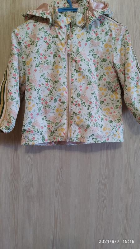 лёгкая ветровка осень- весна,на девочку от H&M, в цветочный принт, по бокам декор на рукаве, смотрится на ребенке очень нежно и под все подходит капюшон на липучке, на возраст 2-4 года.