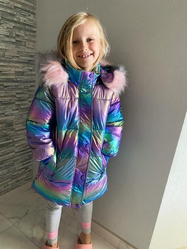 НОВИНКА пальто-хамелеон В НАЯВНОСТІ 👑наповнювач - холлофайбер 👑є кишеньки, на рукавах манжети 👑довжина рукава вказана від плеча з манжетом 👑 відмінна якість 👑капішон знімається 👑хутро штучне, але дуже пухнасте і велике 👑емблема на рукаві інша,фото в коментарях. 💰 Розмір в наявності: 👑116- довж.60см, ог 40*2см, рукав з манжетом 42см 👑122 - довж.62см, ог 43*2см, рукав з манжетом 44см 👑128 - довж.70см,ог 46*2см, рукав з манжетом 52см 👑134 - довж.73см,ог 49*2см, рукав з манжетом 57см 👑140 -довж.76см ,ог 51*2см, рукав з манжетом 61см .корол.